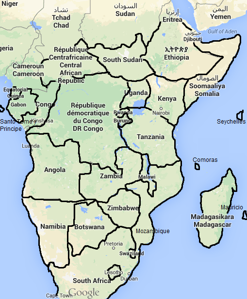 Angola, Guinea Ecuatorial, República del Congo, Gabón, Botsuana, Sudan del sur